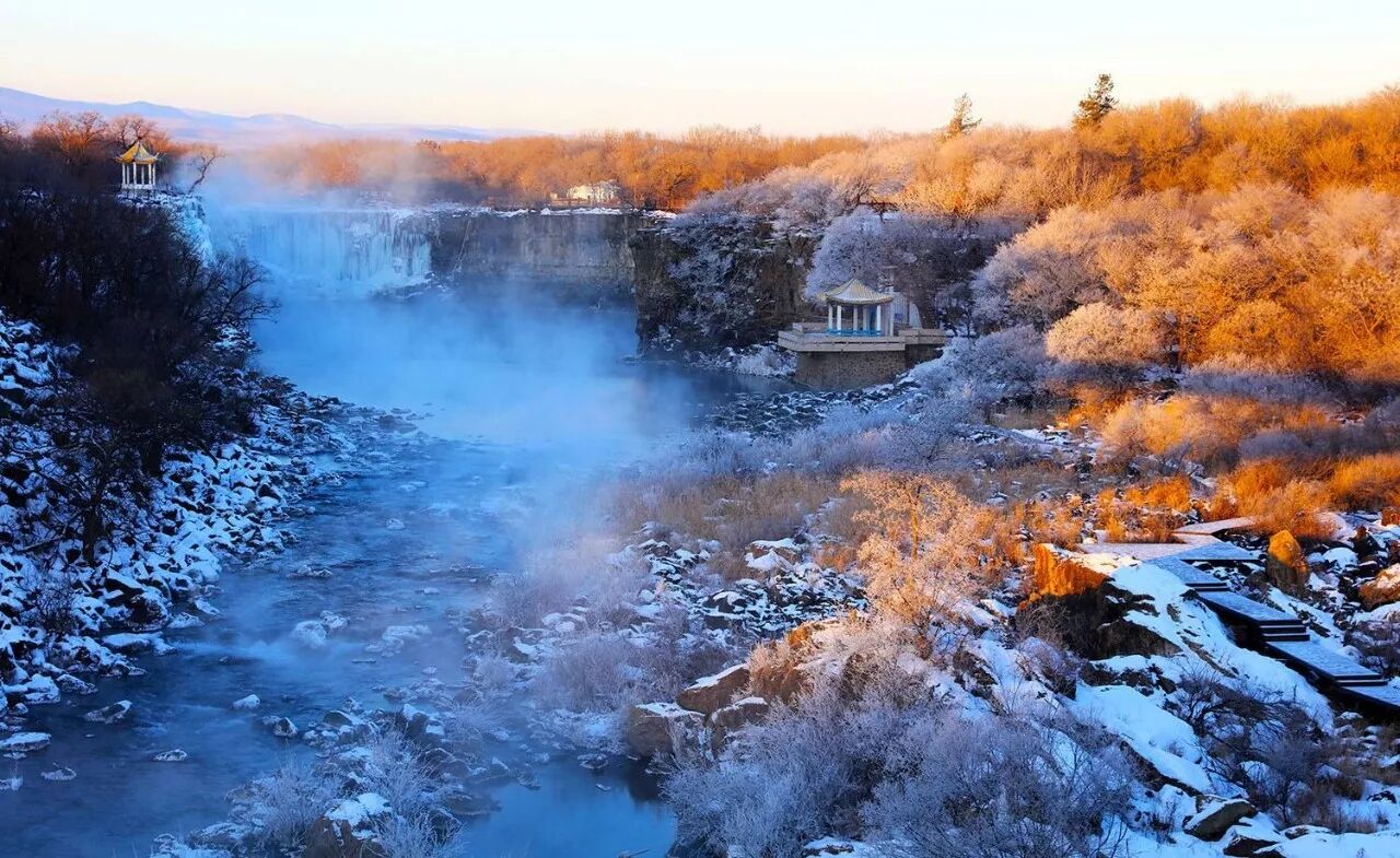 11:00 左右抵达镜泊湖南湖头(镜泊湖是夏季的旅游景点,冬天冰面上也会有许多特色的小活动)所以大家早上早点起。如果饿了也可以在这里先完午饭在出发,春节期间看不见镜泊湖冰面,因为是下午从雪乡走,经过这里就天黑了。